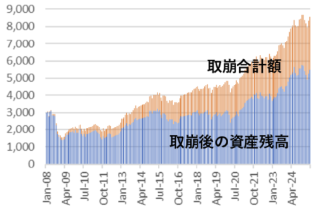 2025年6月には取崩し合計は3088万円、